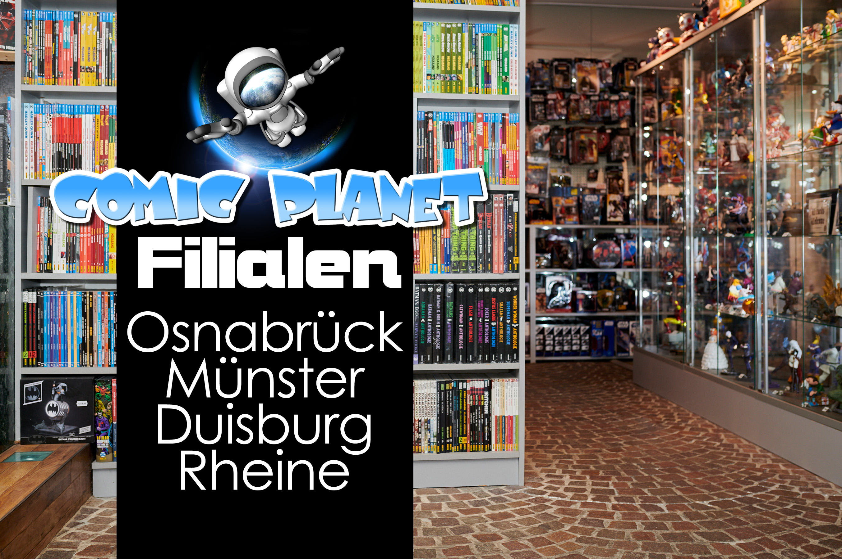 Auf deiner Suche nach deinem Lieblingscomichelden bist Du endlich am Ziel angelangt. Im Comic Planet Online Universum findest Du Comics von Batman bis Spiderman, Mangas von One Piece bis Tokyo Ghoul, Animes von Prinzessin Mononoke bis Detektive Conan und Trading Card Games von Pokemon bis Yu-Gi-Oh. Das Comic Planet Team wünscht dir viel Spaß beim stöbern und wenn Du doch einmal wieder Lust auf ein echtes Comic Shop Live Erlebnis hast dann schau in einer unserer 4 Comic Planet Filialen in Osnabrück, Münster, Rheine oder Duisburg vorbei. Jede Filiale für sich hat ihren ganz eigenen Charme. Was uns im Comic Planet alle vereint sind die kompetenten Mitarbeiter, der freundliche Service und die Freude an unserem Job. Wir haben das Glück jeden Tag mit begeisterten Comic Fans, gut gelaunten Otakus und unerschöpflichen Trading Card Game Spielern wie Dir zusammensein zu dürfen. Hoch sollen sie leben - alle Nerds wie du und ich!!!